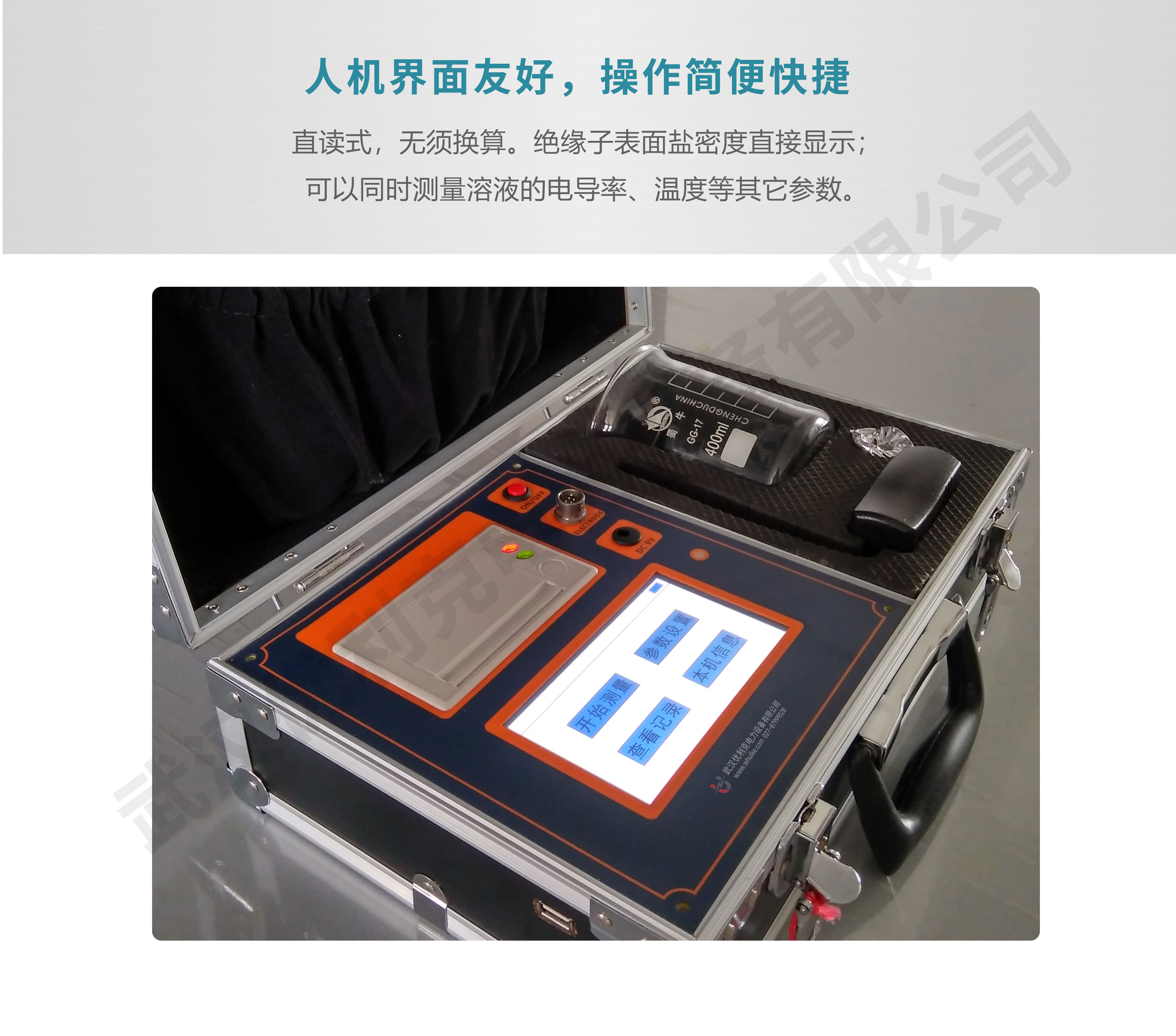 直讀式,無須換算。絕緣子表面鹽密度直接顯示;可以同時測量溶液的電導率、溫度等其它參數