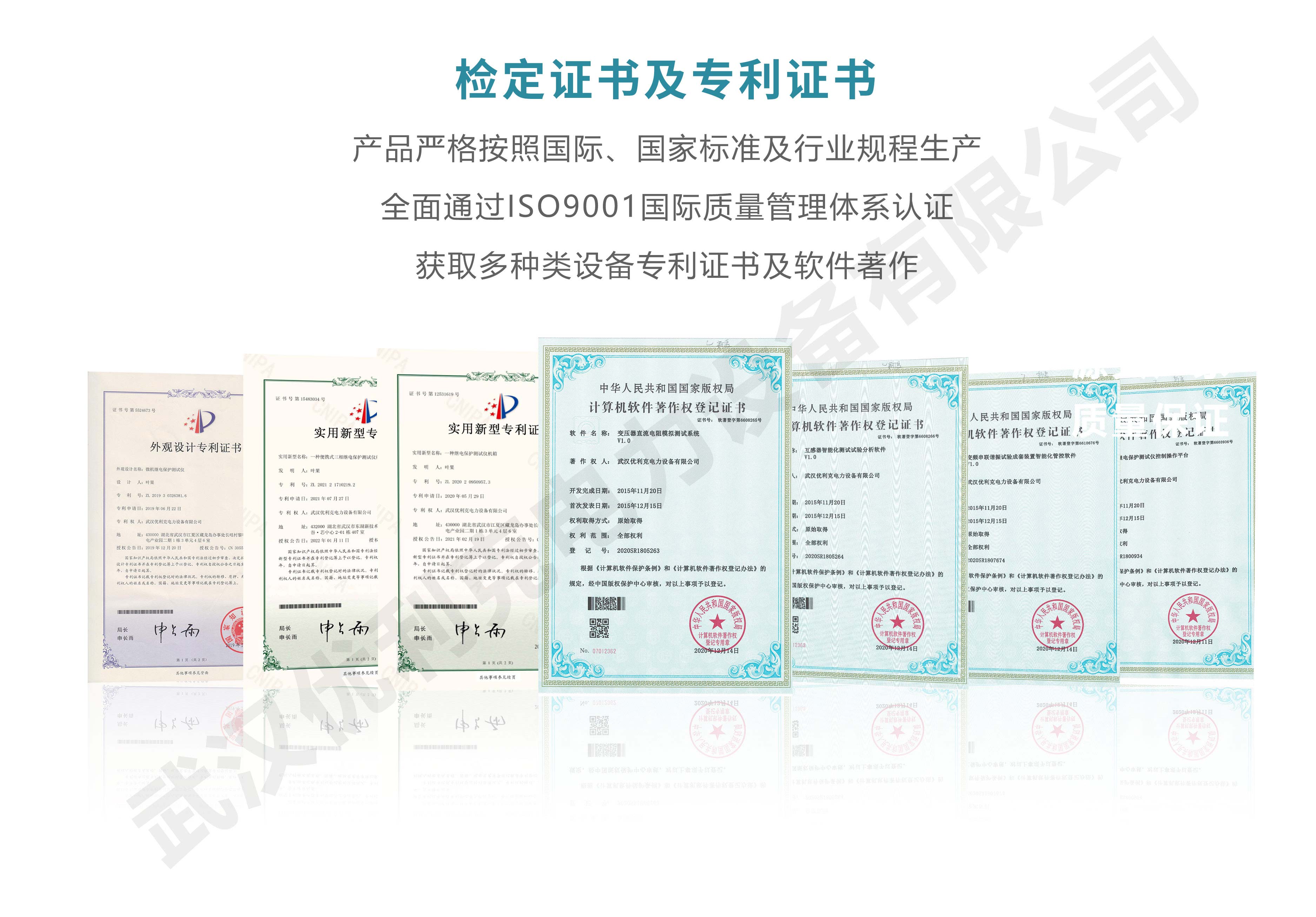 企業產品嚴格按照國際、國家標準及行業規程生產,通過國家、各省級、市級電力研究所、計量中心及電力權威部門的檢測,全面通過ISO9001國際質量管理體系認證、中華人民共和國制造計量器具許可證、GB/T19001-2016質量管理體系要求、GB/T24001-2016環境管理體系要求、GB/T45001-2020職業健康安全管理體系要求。